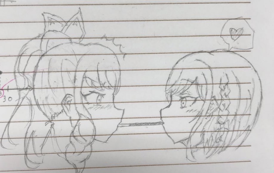 0 1 ノートの片隅ラクガキですけど、ポッキーの日らしいので、みずえながポッキーを食べてるそうです。 #prsk_FA 21/11/11 12:50
