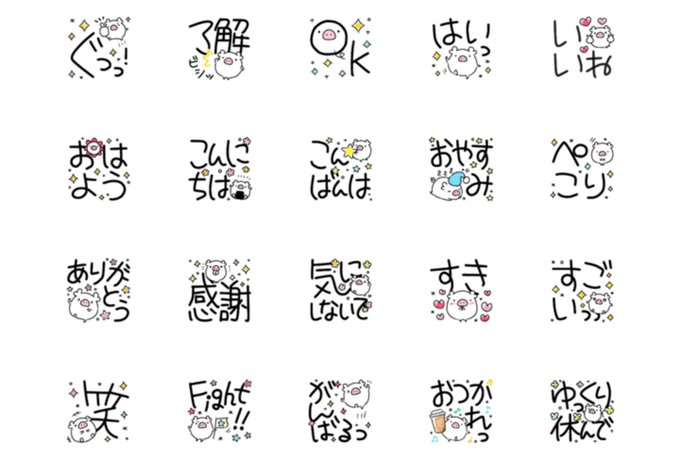 [しろぶぅの絵文字13☆シンプルでか文字] line.me/S/emoji/?id=5f… リリースしました。よろしくお願いいたします。 #LINE絵文字 #私の絵柄が好みって人に見てもらえたらハッピー