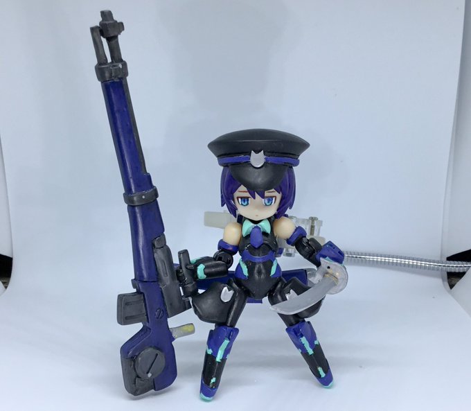 コトブキヤ秋葉原さんで展示中のモエゼさん(をエントリー前にお家で撮った写真)。実物だと所々パールカラーで塗ったのできらっとしてていい感じです。あとアイペイントも自分史上最高の出来なので他の参加者の方々の凄い作品を見るついでに見ていただけると嬉しいです。 #デスクトップアーミー