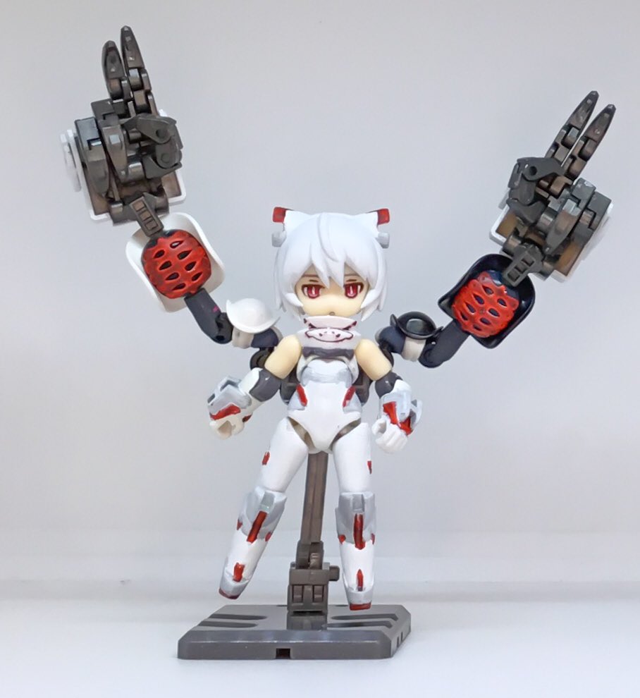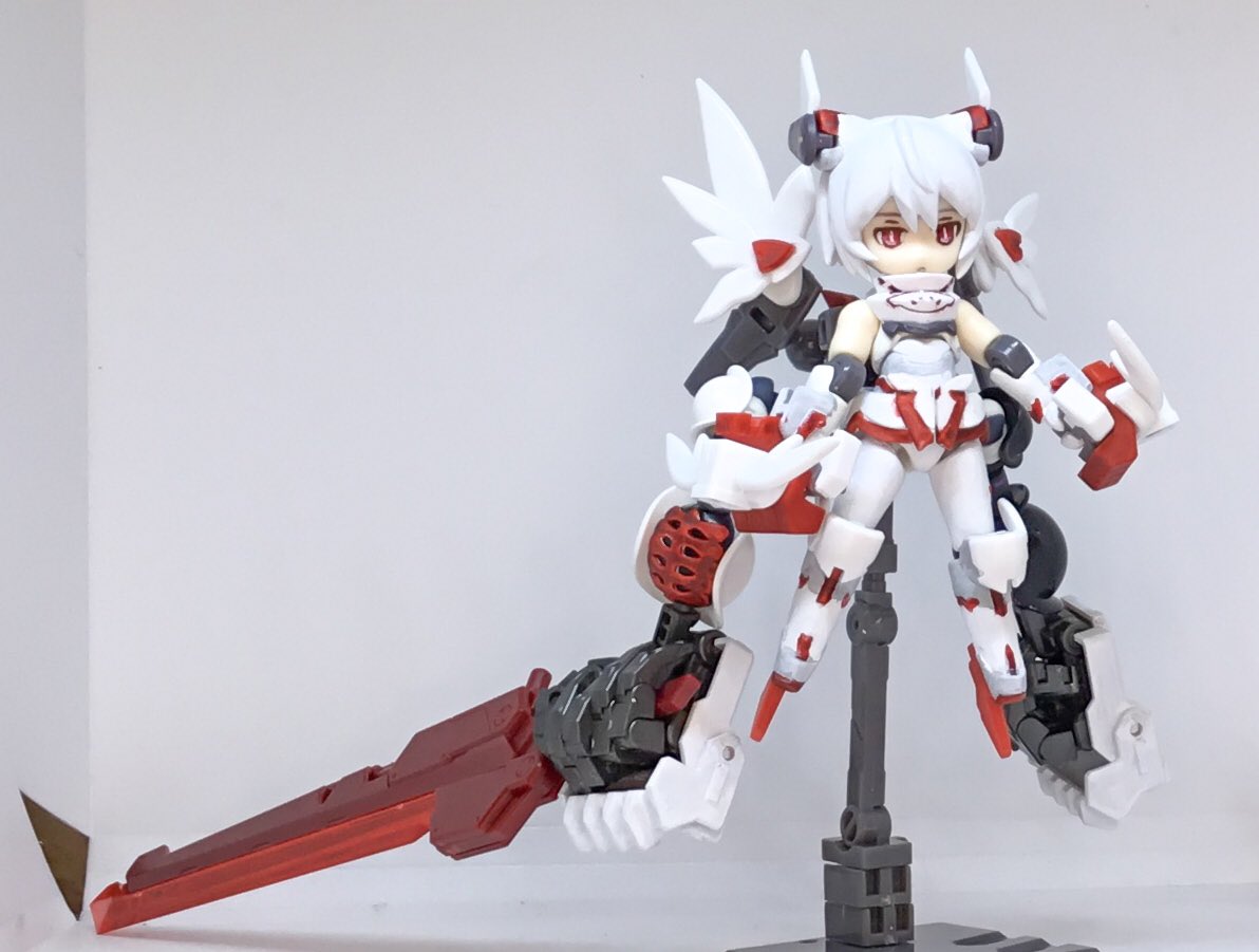うちの子レイが『武装はサブアームのみ選手権店舗予選』で優勝しました!他のメガミが大型アームで暴れ回る中物陰や天井に潜んで闇討ちする戦法がうまくいったみたいです! #メガミ4周年選手権 #4Bコース完成 #メガミデバイス