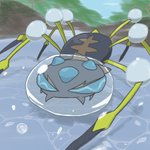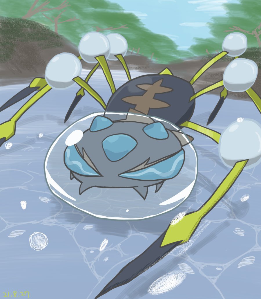 今日はオニシズクモを描きました! 浅い川で水遊びをしているところです🏞 #ポケモン版深夜の真剣お絵描き60分一本勝負 (+20分)