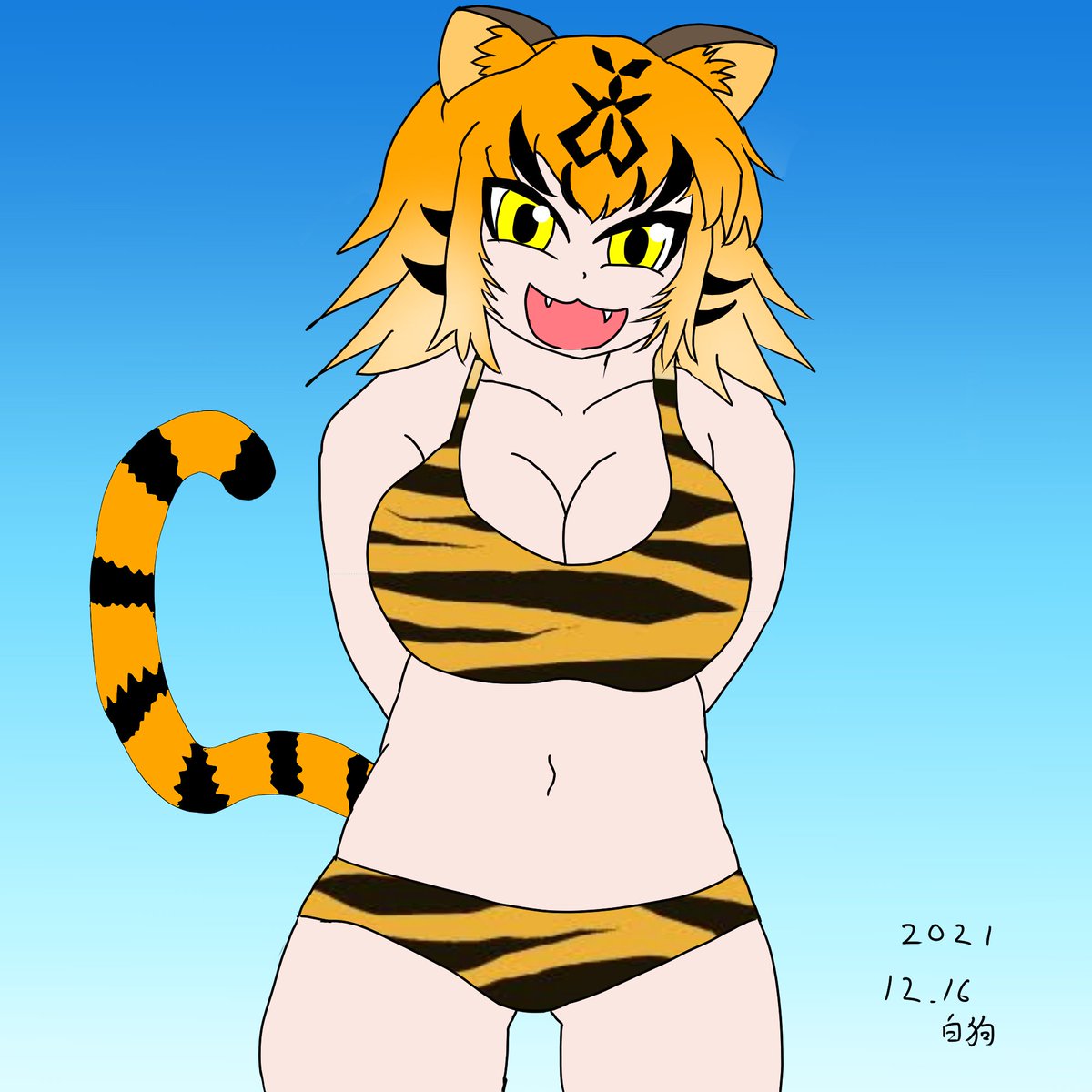 #去年の今頃はどんな絵描いてましたか 虎にビキニ着せてた