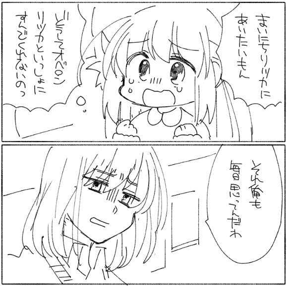 1 6 メノさんリクエストのエアスケブひっつき度が高いルク坊です ひっつかせたつもりがなんか通常運転いちゃいちゃルク坊だったな…? 22/12/11 22:55