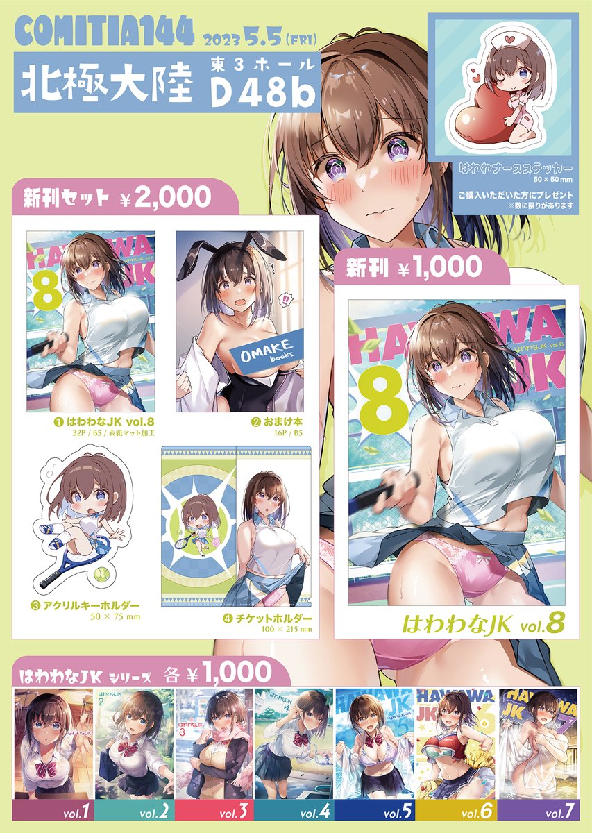 【コミティア144 お品書き❄】 5月5日(金) D48b「北極大陸」で参加します。 新刊と新刊セット、既刊を持っていきます。 ご購入いただいた方にステッカー1枚プレゼント! 当日はよろしくお願いいたします✨ #COMITIA144