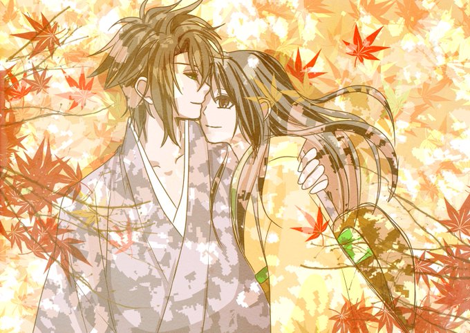 #薄桜鬼ワンドロ深夜のお絵描き60分 紅葉 沖千、紅葉の絨毯 60∔10分