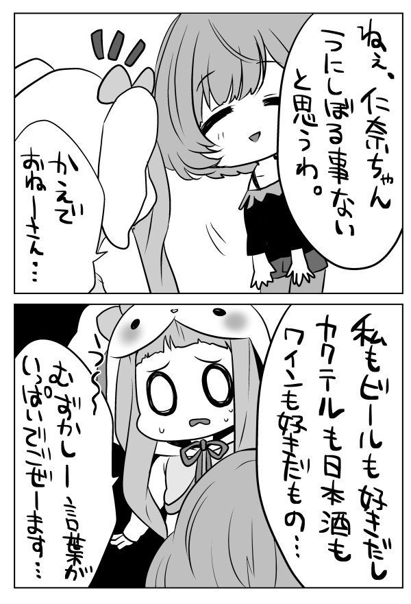 44 126 【新刊宣伝】10/8歌姫庭園にて市原仁奈ちゃん中心のゆるーい2コマギャグ本「になの一番好きなもの!」を発行します!おねーさんたちも登場しますー!デ01「MPグライダー」にて頒布予定です!どうぞよろしくお願いしまーす!! 18/10/03 22:25