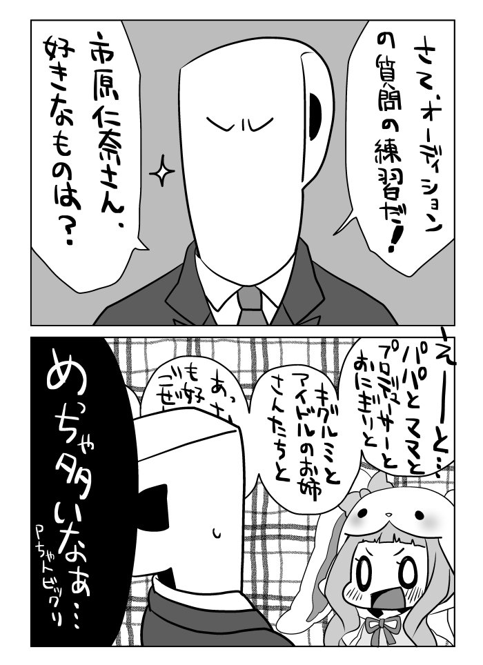 【新刊宣伝】10/8歌姫庭園にて市原仁奈ちゃん中心のゆるーい2コマギャグ本「になの一番好きなもの!」を発行します!おねーさんたちも登場しますー!デ01「MPグライダー」にて頒布予定です!どうぞよろしくお願いしまーす!!