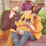 一緒に(?)アルバム聴いてるところ🥜🎧 #金剛力也像 #兄ぽこあーと