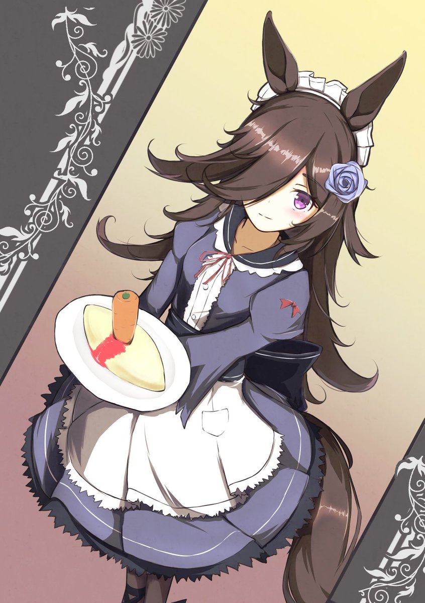 #ウマ娘 #ライスシャワー #メイド服 「ライスのオムライス…だよ!」