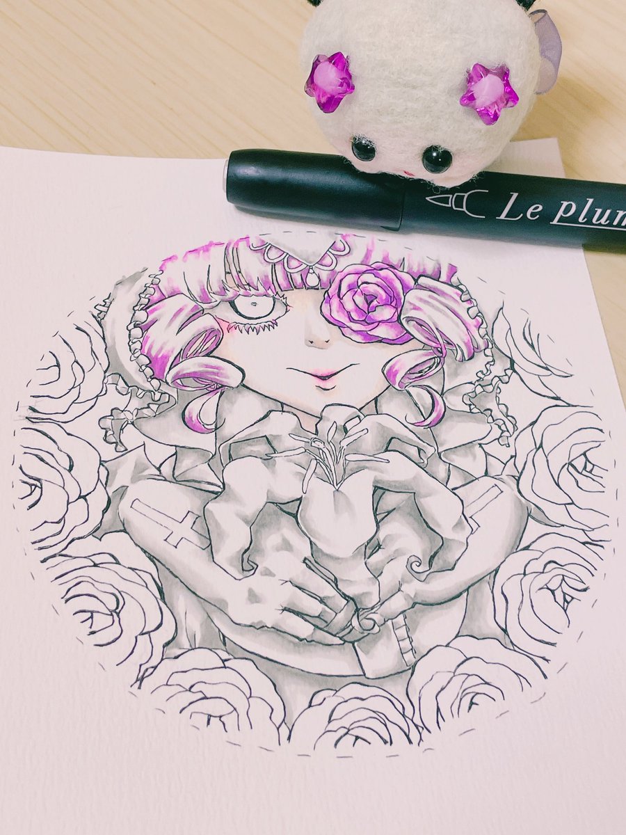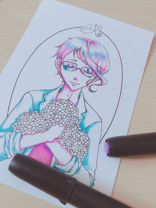 わぁい‼️ 久々のカラーイラストだぁ!\( ˙꒳˙ )/✨ 絵は鮮度。描きたい時に描けるのは幸せなことですね わたしはコピックをホットカーペットで蒸発させた馬鹿なので、マービーとダイソーの安いアルコールマーカーで! #ツイステファンアート #アナログイラスト