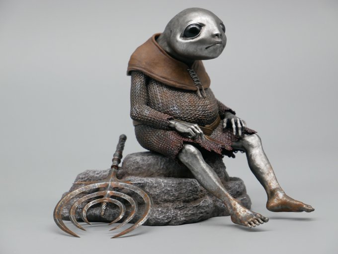 しろがね人の方、原型完成し塗装していただきました。 次回WFにて未塗装の3Dプリンター出力品キットとして6000円で販売する予定です。 台座と剣の方も付属しておりますー 塗装:スズキしんや@suzuki_predat #EldenRing #wf2023w