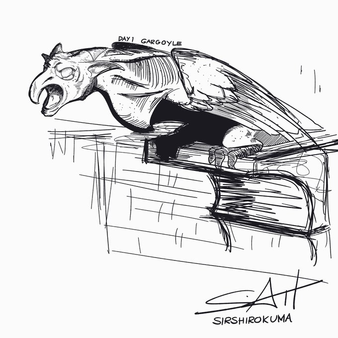 Day 1 is Gargoyle! #Inktober #Inktober2022 We actually drew a lot of these things during our history course while we were on the topic of the gothic era!