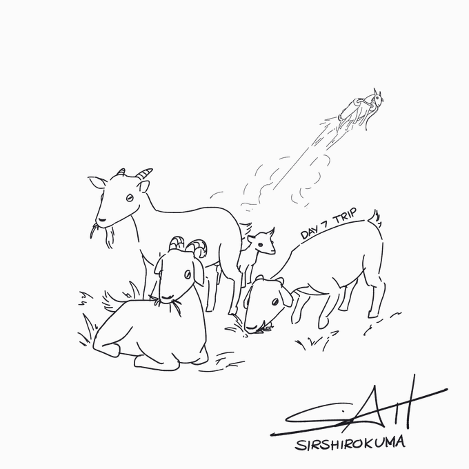 Day 7 is Trip! #Inktober #Inktober2022 "Tripped while on my trip to see a trip of goats and the goat that takes trips."