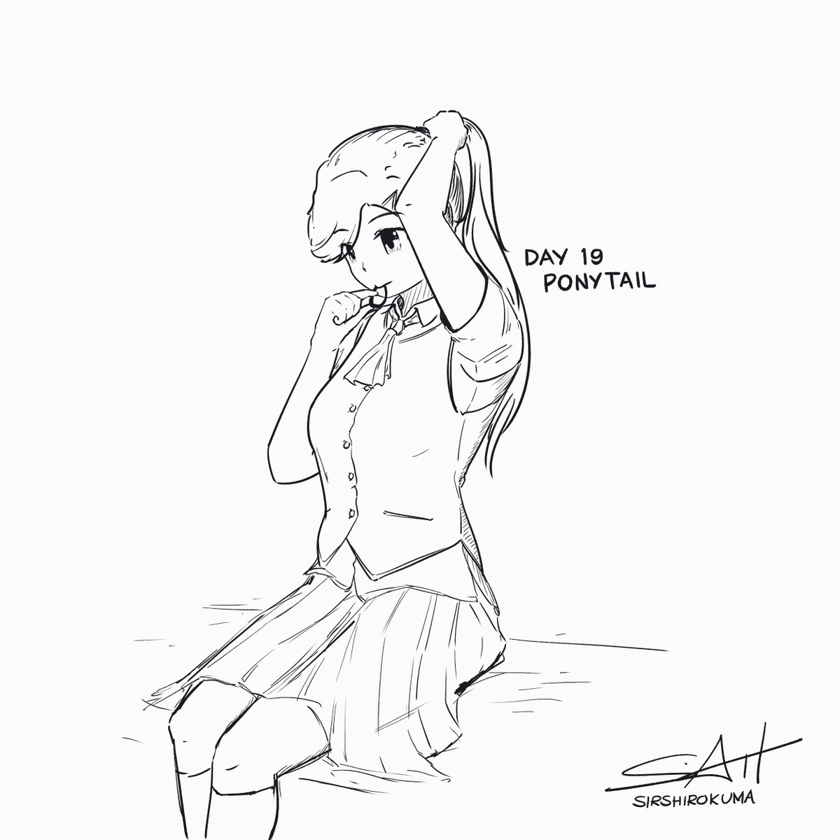 Day 19 is Ponytail! #Inktober #Inktober2022 Tying her hair up. (+ flat color version because why not)