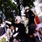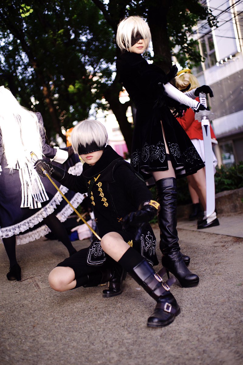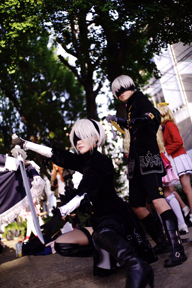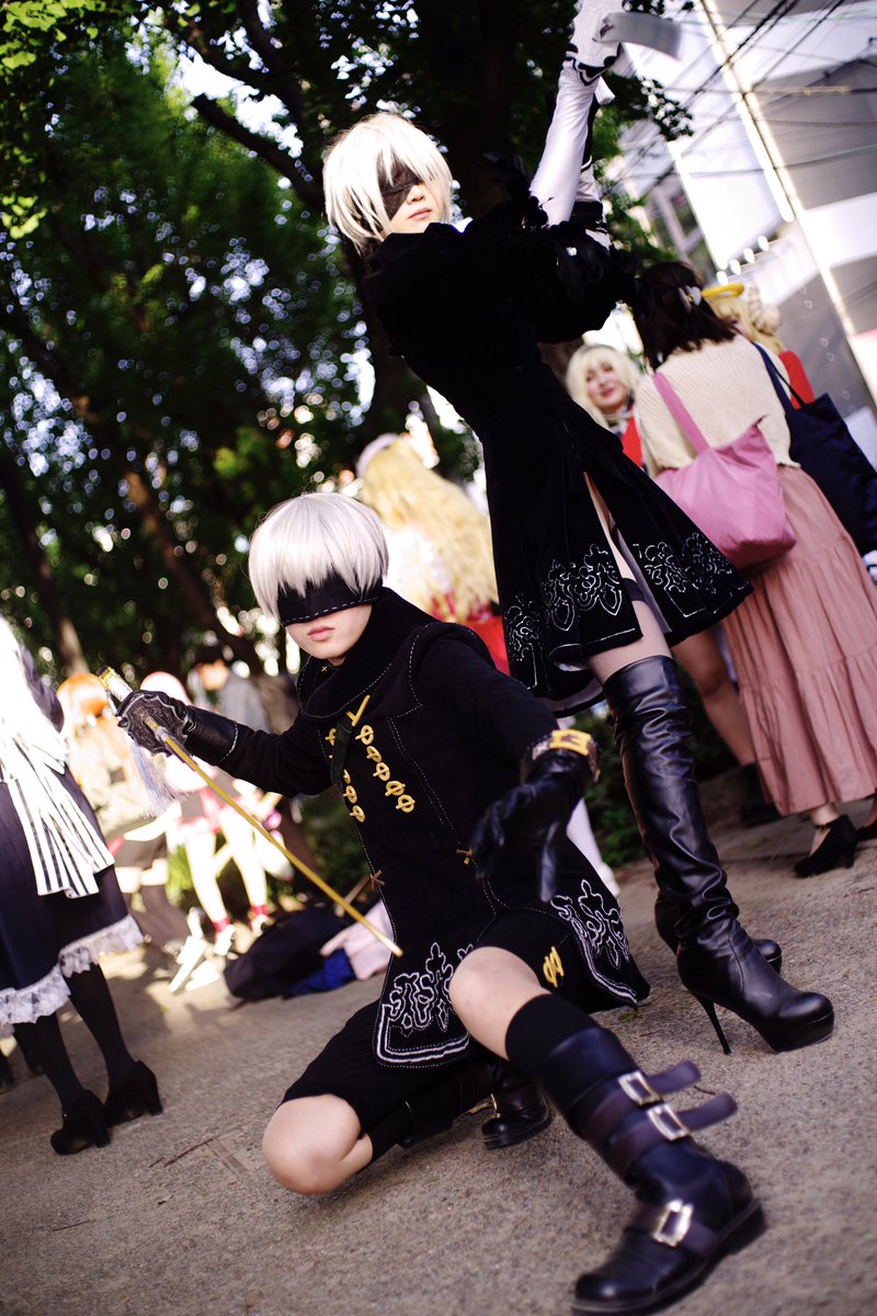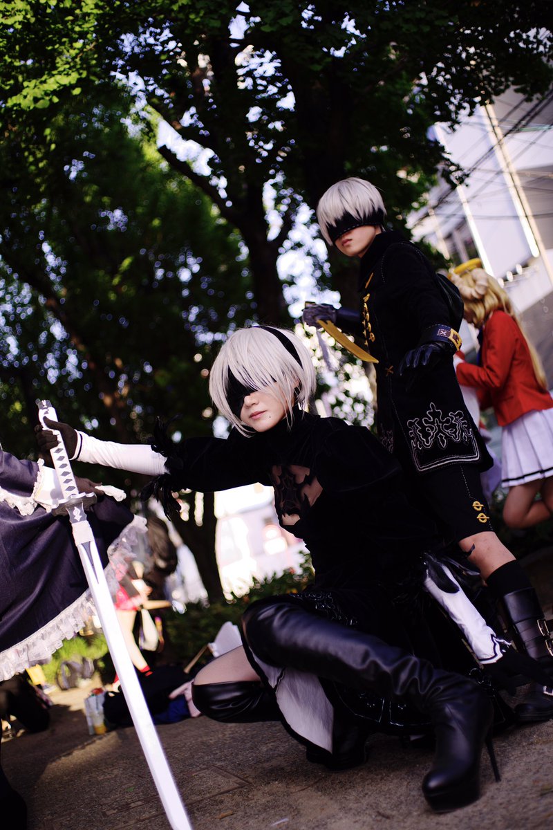 陸さん(@iriomoteumiushi )撮影 9S→松村さん(@mtmr1kun ) 2B→私 (ハッッ見えたッッ!!) #ホココス #2B #9S #コスプレ