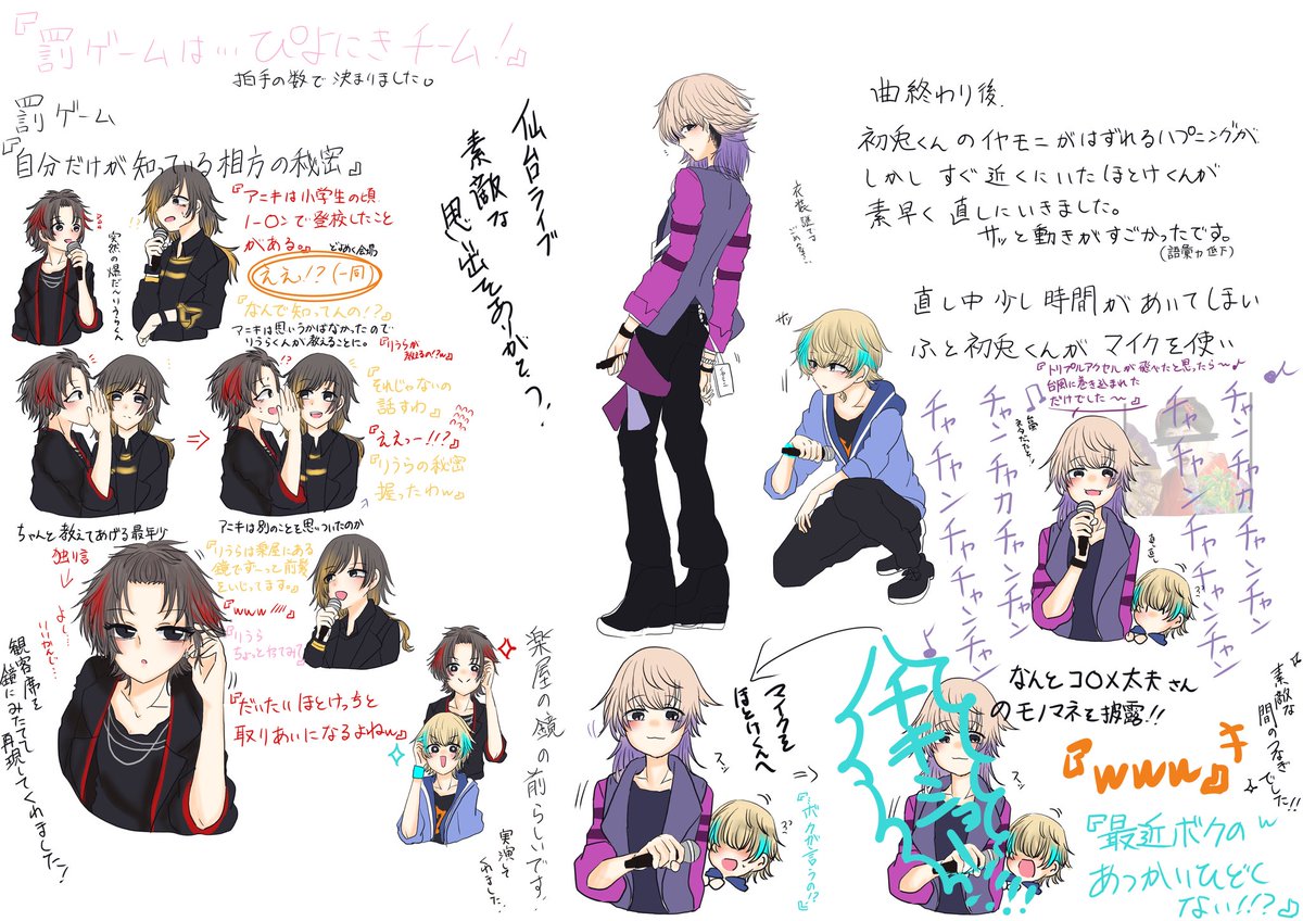 仙台ライブ第1部レポその2です! 特に印象に残ったトークタイム描きました!🙌☺✨ いれいすの皆さん素敵な時間をありがとうございました✨🙏🏻✨ #いれいすライブレポ #きいてよりうらくん #仏イム #みにうさー #聞いてよないこくん #いふ民の乾杯挨拶 #悠すけっち