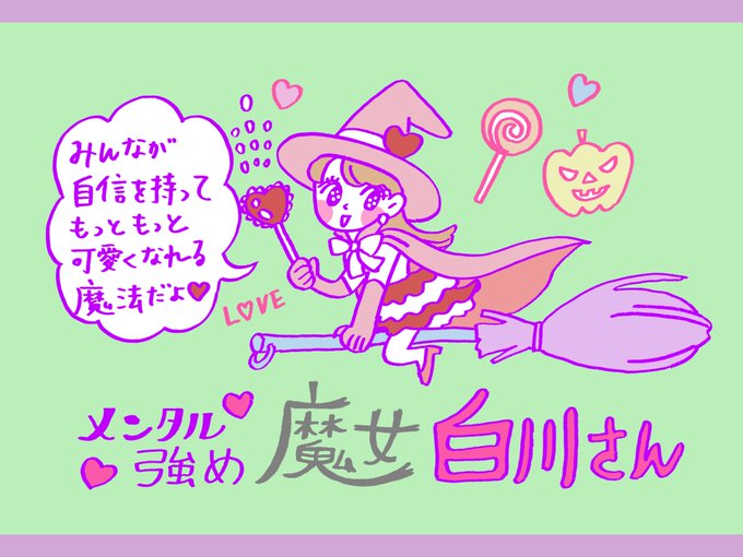 【白川さん】 昨晩UPホヤホヤの新作漫画と、メンタル強め魔女の初出イラストはコチラ 数年前のハロウィンに描いたイラストだった気がします…🎃🍭🪄 twitter.com/sisi0ccc/statu…