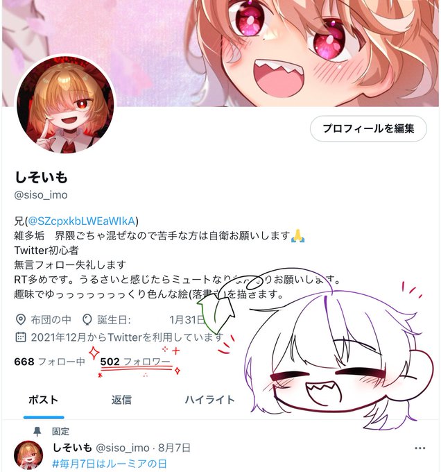 フォロワー様500人ありがとうございます!✨😭 一つの大きな目標が達成できました!これからも楽しんでいきたいです! 記念絵はいつか出します!