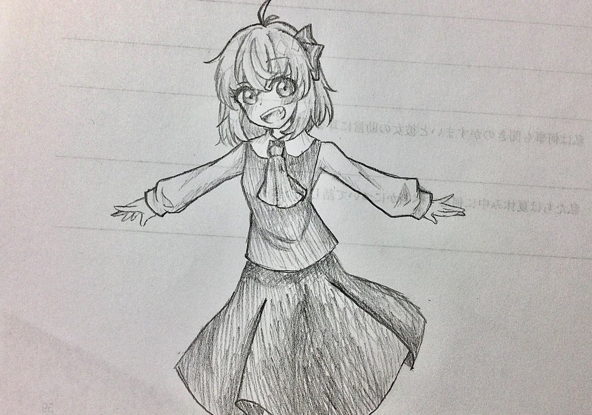 絵あげなさすぎるから物理のテス勉中に描いた落書き ( 。・・)/⌒□ポイ