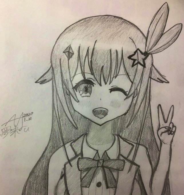 26 91 配信見ながらアナログで描いてみた(*´꒳`*) やっぱり全然思い通りには描けないけど、久しぶりに描き切ったかも…! #ときのそら #soraArt 20/01/31 19:35