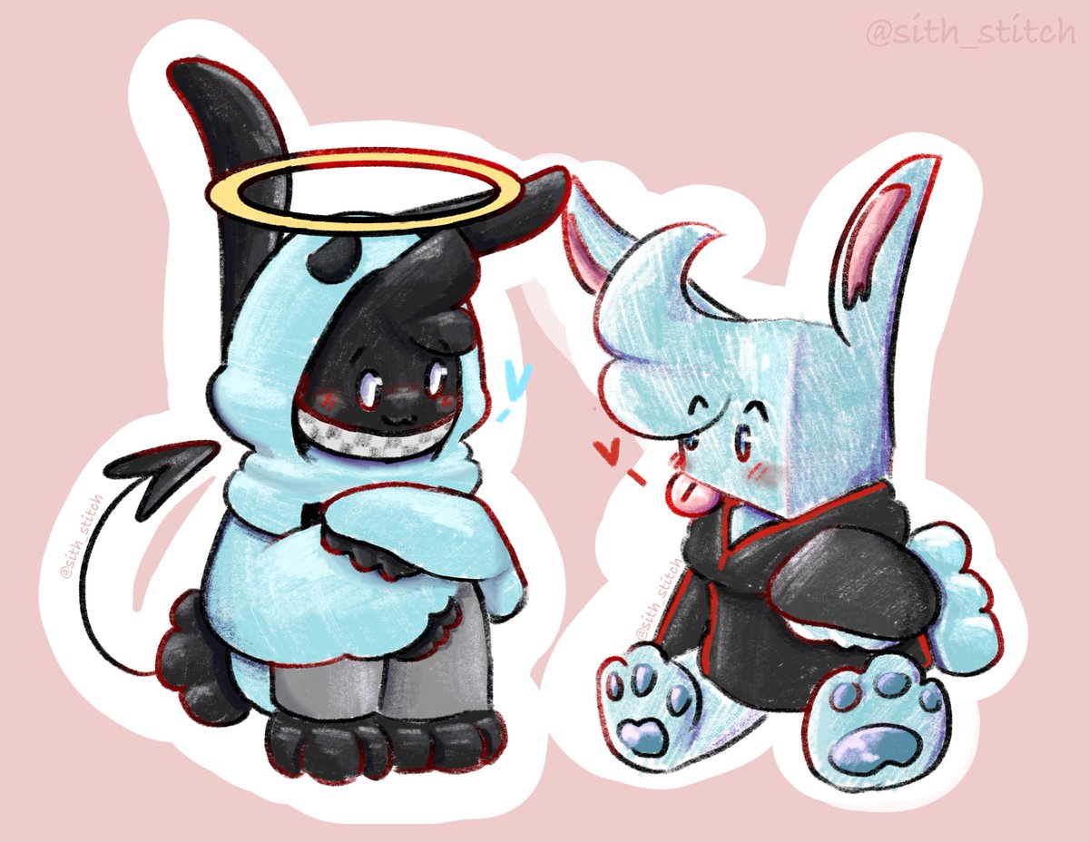 Matching outfits 🥰 and yes Bad dressed them up as himself #badboyhalofanart #skeppyfanart #skephalo #skephalofanart #badboyhalo (RTS appreciated <3) twitter.com/sith_stitch/…