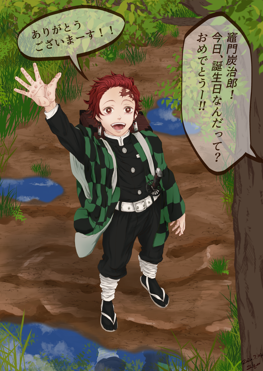 4 22 #竈門炭治郎誕生祭2020 ギリ間に合った! 長男!!お誕生日おめでとう!! 君の笑顔に元気もらってるモブ隊士だよ^^ 20/07/14 23:57