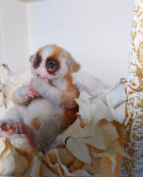 油断しているスローロリスちゃんも📸パチリ✨ #羊毛フェルト