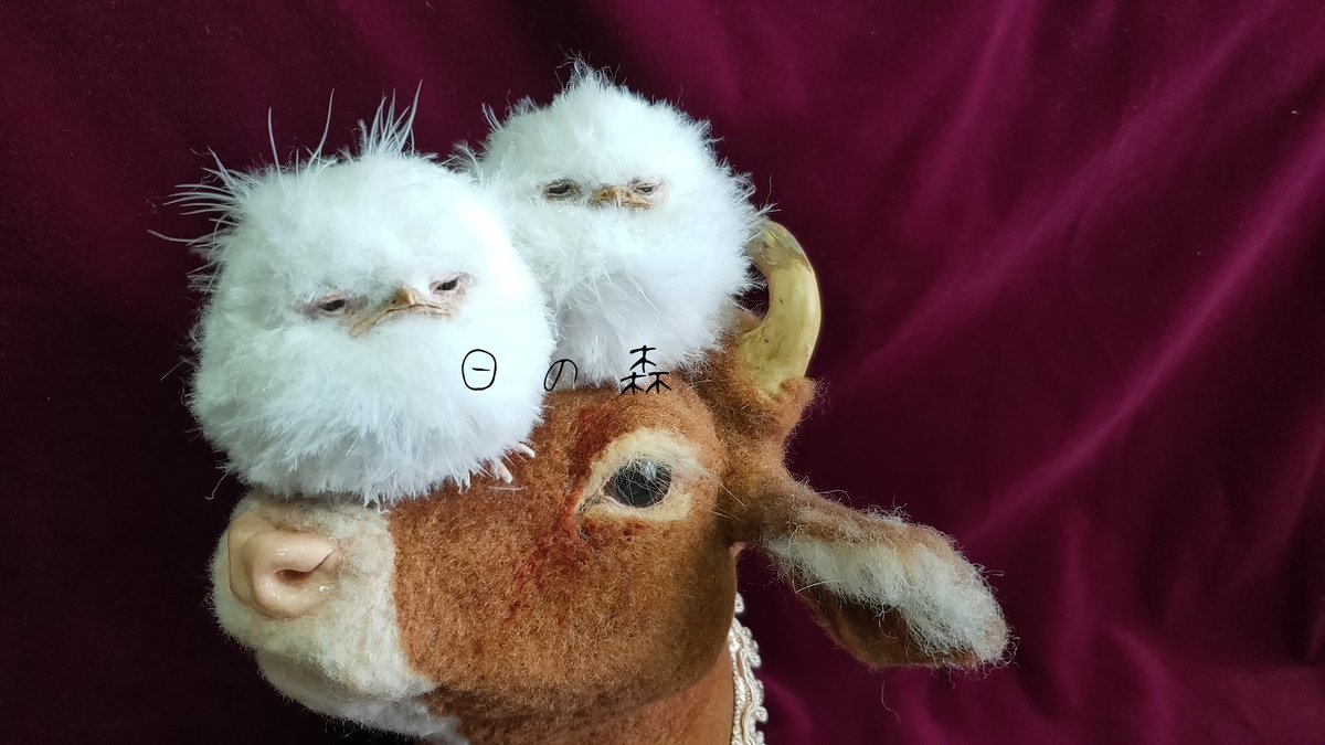 見下ろす牛くんも撮影✨ 見下ろす…より見守るかな?🙄 #羊毛フェルト
