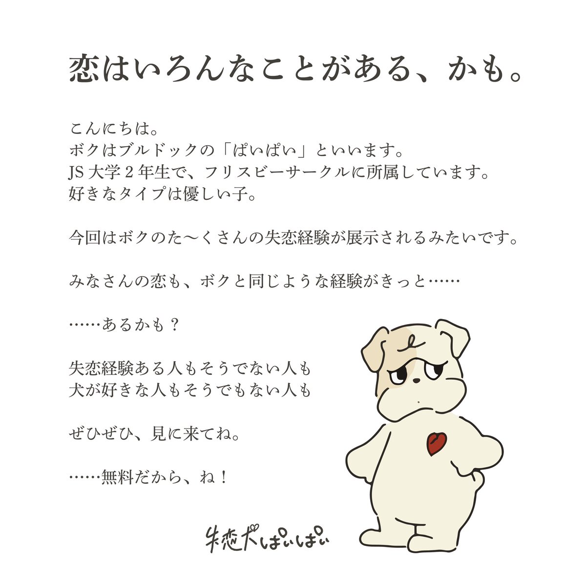 🌈お知らせ なんと❗️僕の失恋ストーリーをテーマにした展示イベントが開催されることになりました...🥲👏 詳細は⬇️チェックしてください🐾 #失恋犬 #失恋犬ぱいぱい #漫画が読めるハッシュタグ #皆で楽しむtwitter展覧会