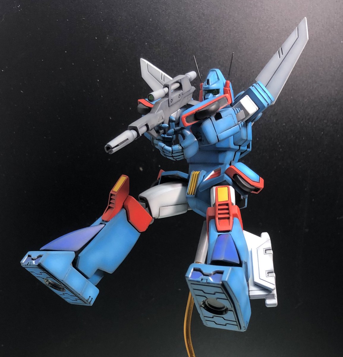 バンダイ1/72レイズナー、大腿を再改修して完成しました〜 銃を構えるポーズはハイメタルRの商品紹介ページを参考にしました。次はデロイアです! #レイズナー