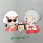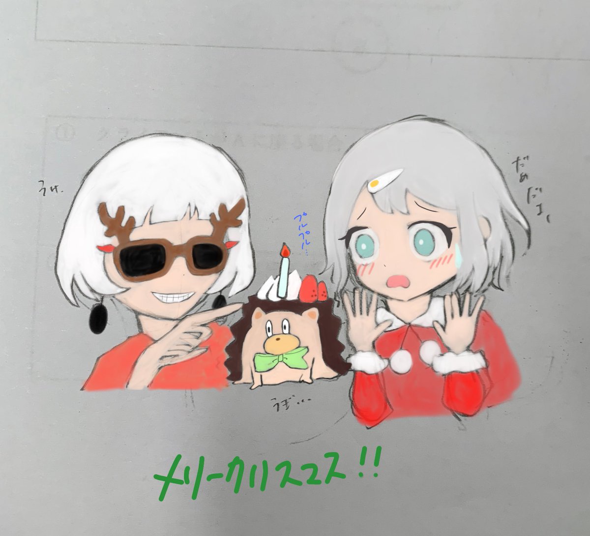 16 109 メリークリスマス(イブ)🦔🎂🎄 うにぐりくんをケーキにする勘冴えにらと慌てるミラボにらちゃんです #ずとまよファンアート 21/12/24 18:50