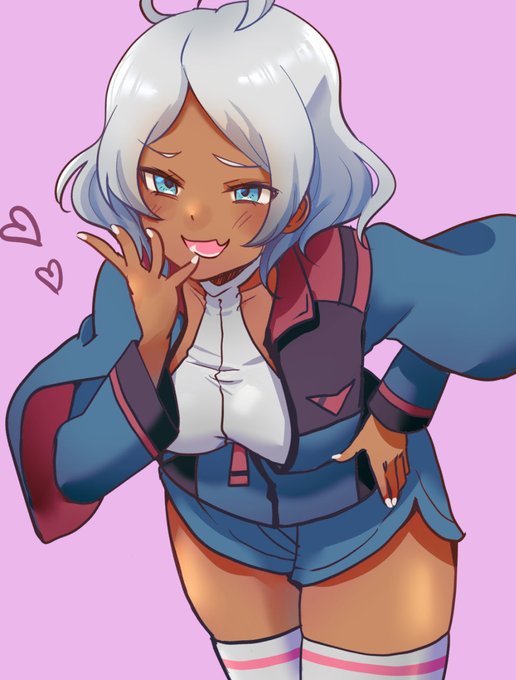 セセリアちゃん褐色銀髪ムチムチ太ももに謎のやらしいインナーにネイルにてんこ盛りですごい可愛いざぁこ♡ざぁこ♡言われたい #水星の魔女