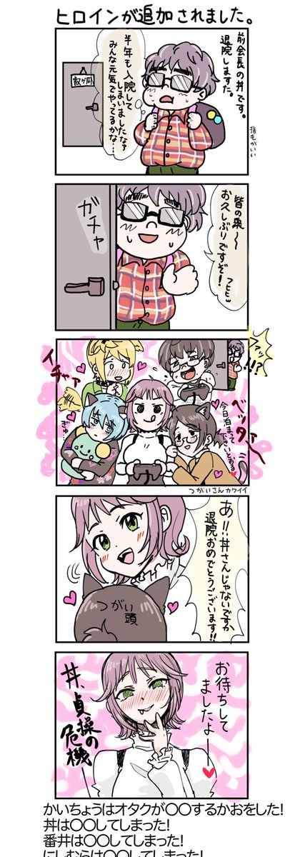 #陰ラブFA 会長が陰キャのみんなを侍らせてるみんな仲良し幸せ世界線の下ネタ漫画だよ❤️ 丼さんいつまで入院してるんですか丼さん遅れて登場するヒロインなんですか丼さん