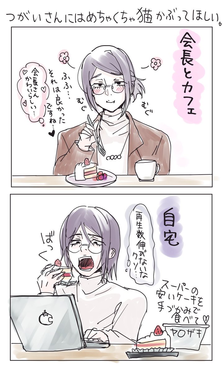 #陰ラブFA 会長さんとご飯食べる時はお淑やかになりそうなつがいさん可愛いですねという頭の悪い妄想ですわ つがいさんの頬を染める時と下まつ毛バシバシさせる時が一番楽しい