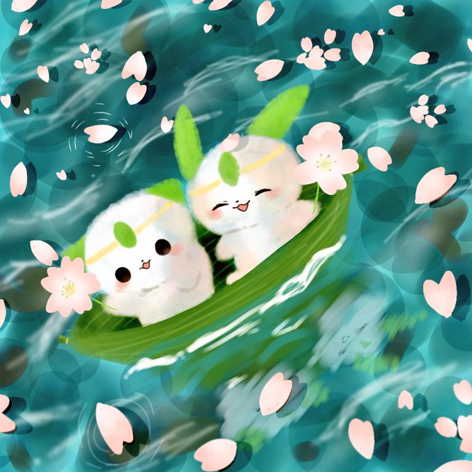 1 11 笹船に乗って2人でおでかけ🌱 桜がきれいだね🌸 #絵描きさんと繋がりたい #ゆるいイラスト #ゆるい絵 #桜 #笹舟 #春 23/04/09 16:03