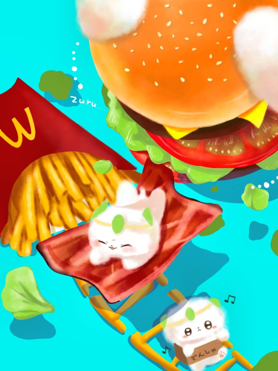 4 44 ハンバーガーは中身がでがち🌱 マックのポテトは至高🍟 #マック #ハンバーガー #ポテト #ゆるい絵 #ゆるいイラスト #絵描きさんとつながりたい #食べ物イラスト 23/04/11 16:11