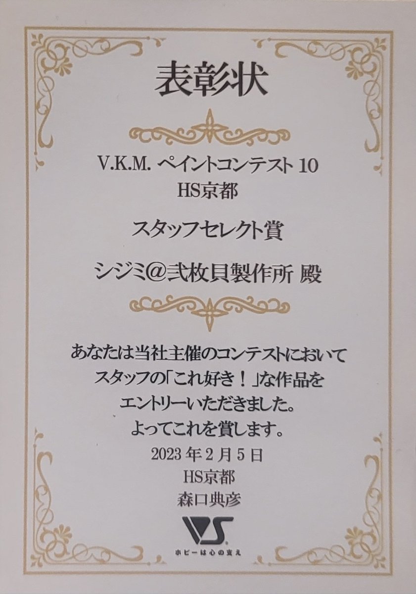 コンテストに参加してた作品がスタッフセレクト賞に入ってました!( ;∀;) 皆さん素敵な作品ばかりで圧倒されてたんですが( ;´Д`) こんな作品を選んでいただきありがとうございました! #ガンプラ #ガンプラ好きな人と繋がりたい #ガンプラの画像貼るとRTされると聞いて #ボークス #VKMコン10