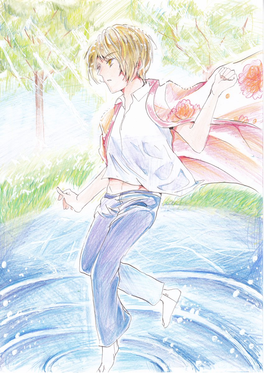 #色鉛筆 #アナログ 夏目君 水辺に舞い降りる。