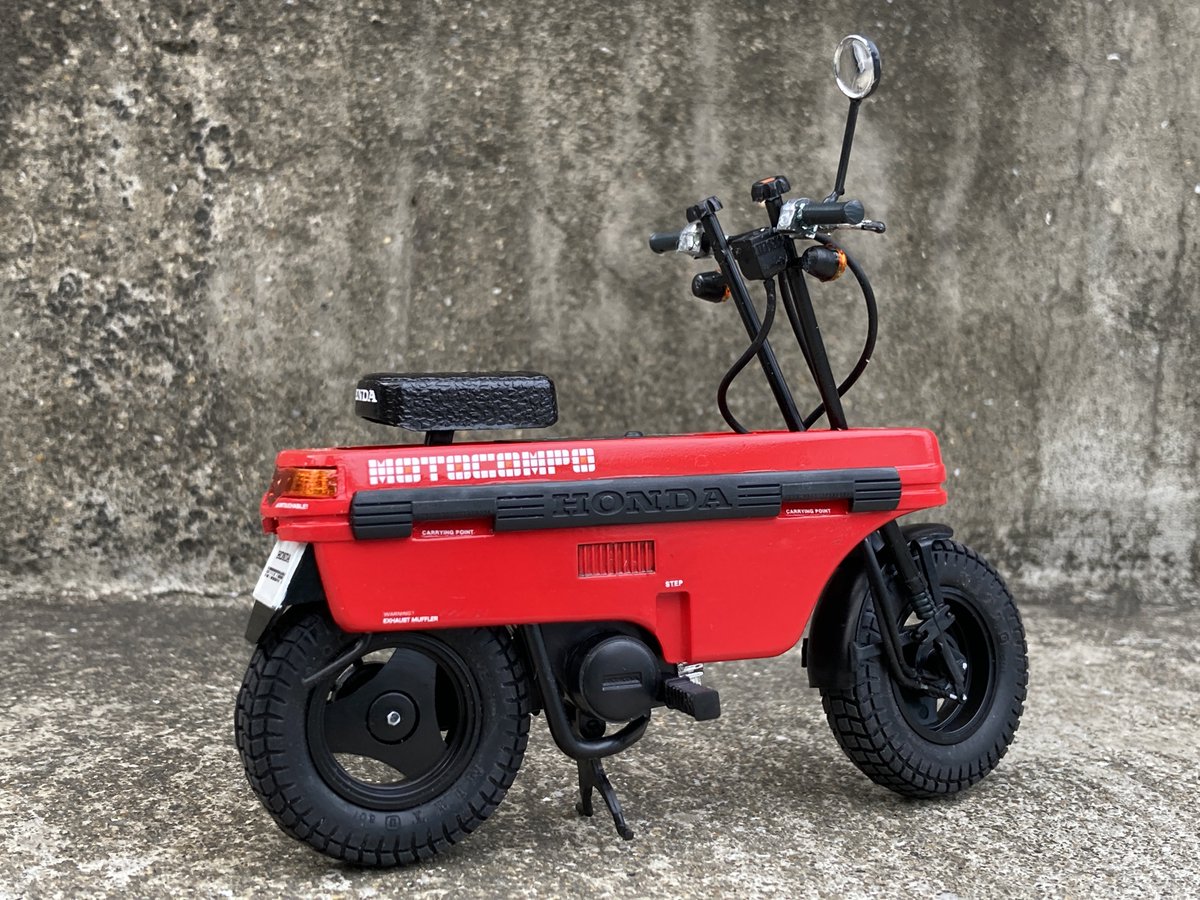 アオシマ 1/12 モトコンポ、完成しました。 製作期間、合計約6時間。 わりと塗装に手間がかかりました。
