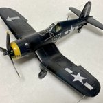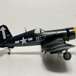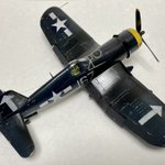 24 159 タミヤ 1/48 F4U-1D コルセア、完成しました。 製作期間は合計8日(全部で10時間くらいかな?)、主にラッカー系エアブラシ塗装。貼り線はストレッチリギングです。 22/12/24 11:28