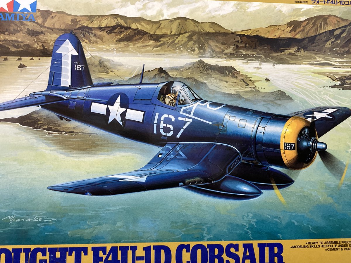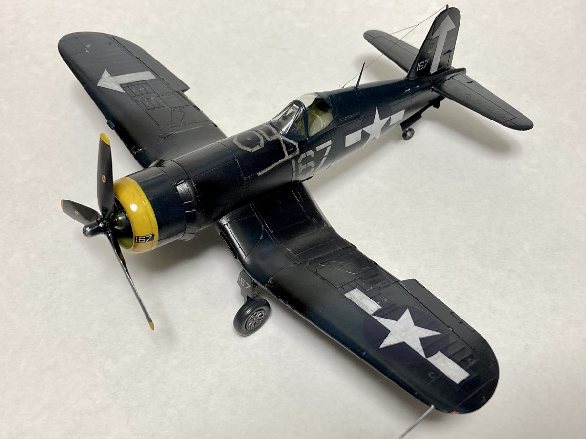 タミヤ 1/48 F4U-1D コルセア、完成しました。 製作期間は合計8日(全部で10時間くらいかな?)、主にラッカー系エアブラシ塗装。貼り線はストレッチリギングです。
