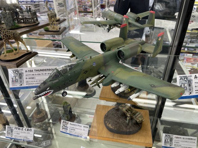 43 233 モデルアート5月号の作例 タミヤ1/48 A-10Aを、イエローサブマリン秋葉原スケールショップさんに展示していただきました。お立ち寄りの際に見ていただければ幸いです。 23/03/31 16:59