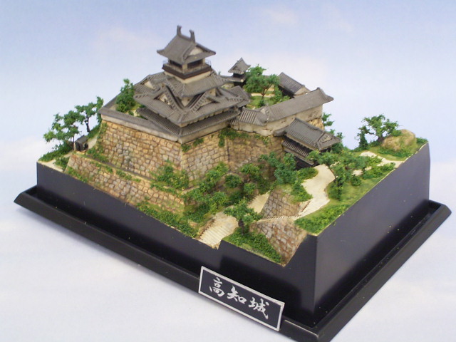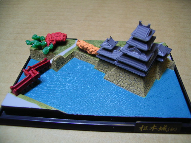 #これを見た人は塗装前と塗装後を貼れ 童友社 城郭コレクション 日本の名城 高知城 塗装済みのトレーディングミニチュア。植物の造型も塗色の選定も非常に抽象的なので思い切りリペイント、樹木は植え直した。