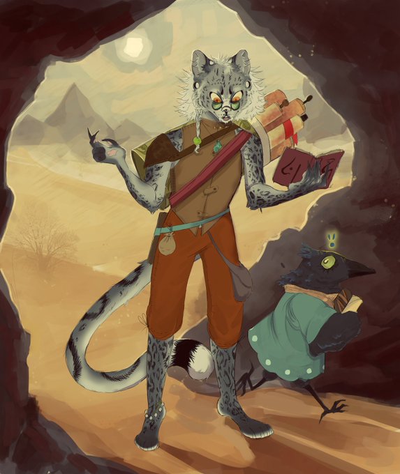 Zypher the tabaxi lore master with his pal Louise!! Very fun comission !!! #dndart #dnd5e #DnDcharacter