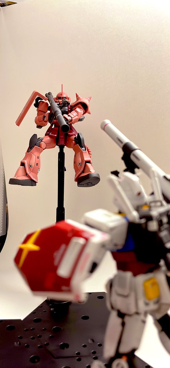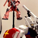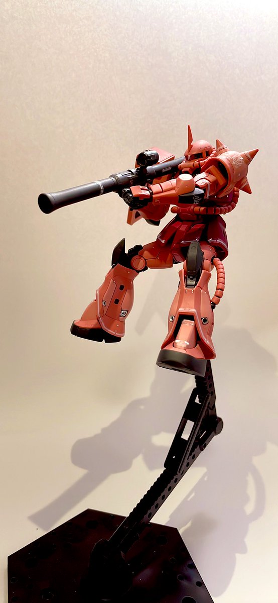皆様地震での被害は大丈夫でしょうか?? お怪我などない事を願います。。 そして、、苦行のパイプのヤスリから解放です…w RGシャア専用ザク無事完成✨ バーニア等をメタルパーツ風にマーカーで塗装してみましたw まだまだな作品ですが…。 #ガンプラの画像貼るとRTされると聞いて #ガンプラ