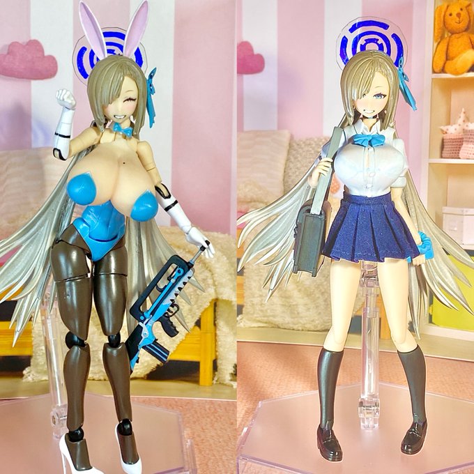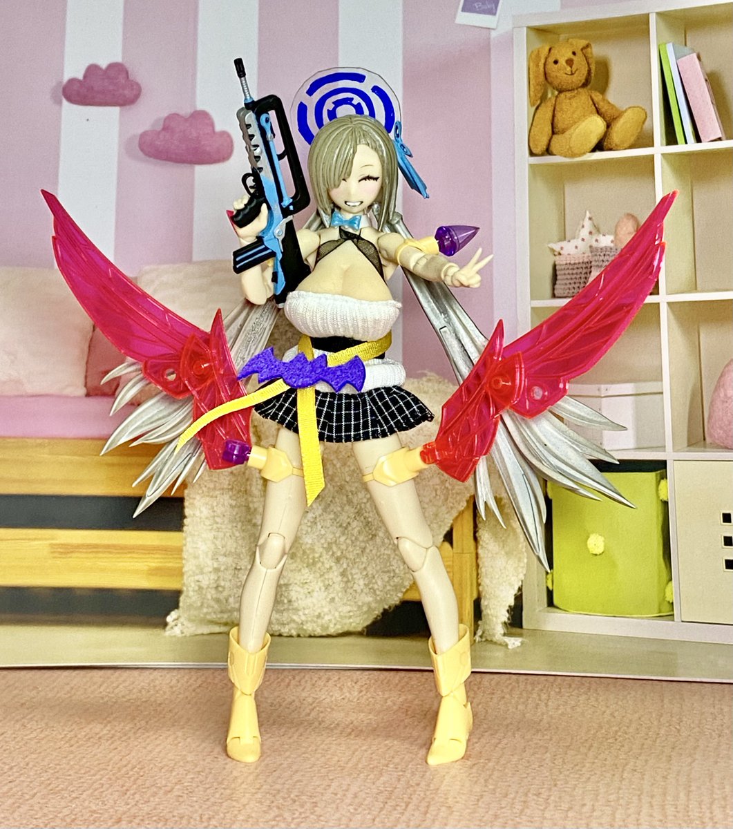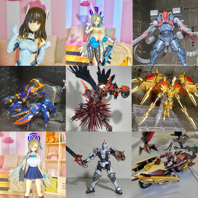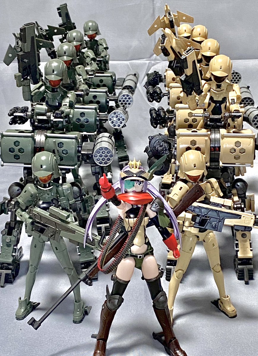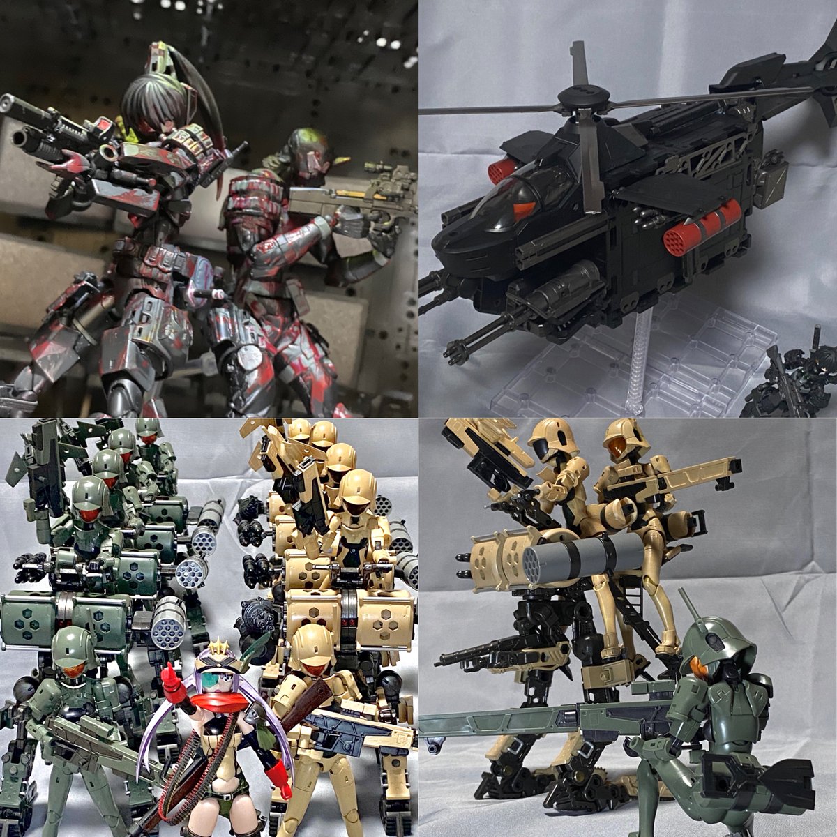 #今月作ったプラモ晒そうぜ 今月はオフ会に間に合わせる用にサプライズで作ったハンドスケールのアスナとアスナ専用ヘキサギア ボーパル・サプライズ プラモではないが片手間でリボルブチェンジシリーズを塗ってました