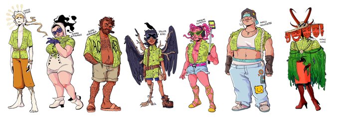 a lineup of every current fridays character i could draw before i ran out of energy 💕🏝 [#Blaseball #blaseballfanart @blaseball]