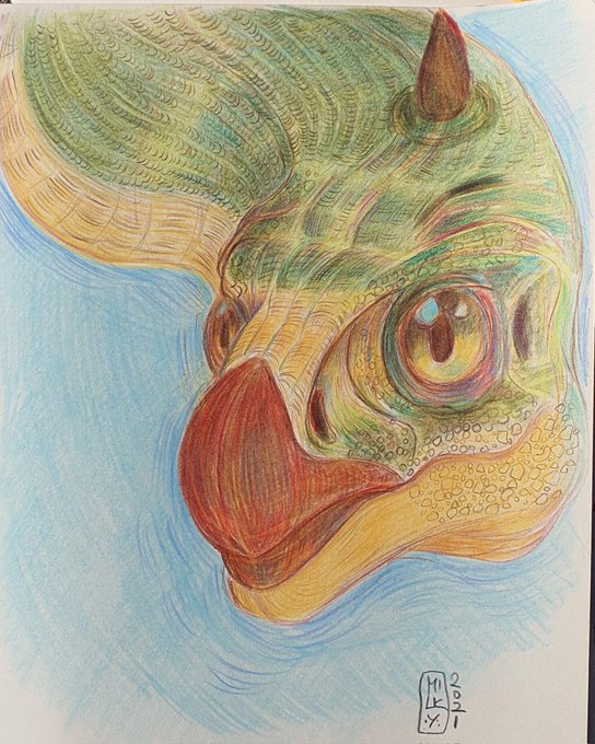 Es war die Idee von @DameraCrystmon. Ich hatte einen Vorsatz, jeden Tag etwas zu zeichnen. Bis jetzt ist es gut, ich kann es machen. #traditionalart #triceratops #paleoart