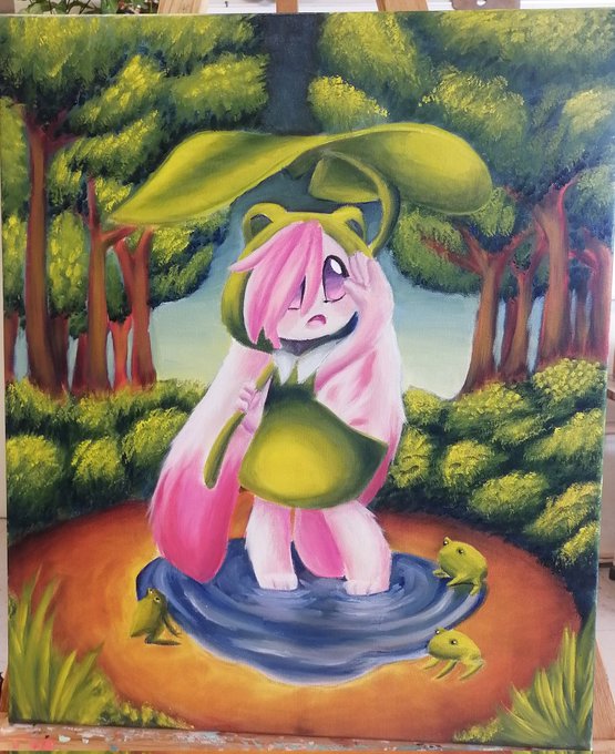 Zoe Harmony, una niña que vive en el bosque, acompañada por ranas Esta es la primera pintura en óleo que hago en un bastidor de 60x50. Esta terminada aunque aún necesita algunos retoques #oilpainting #traditionalart #ArtistOnTwitter