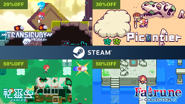 Steamウィンターセール!『トランシルビィ』『ピコンティア』『フェアルーンコレクション』『神巫女 -カミコ-』がセール中です!よろしくお願いします!! #インディーゲーム #ドット絵 #indiegame #pixelart ■セール中のゲーム一覧 store.steampowered.com/search/?develo…